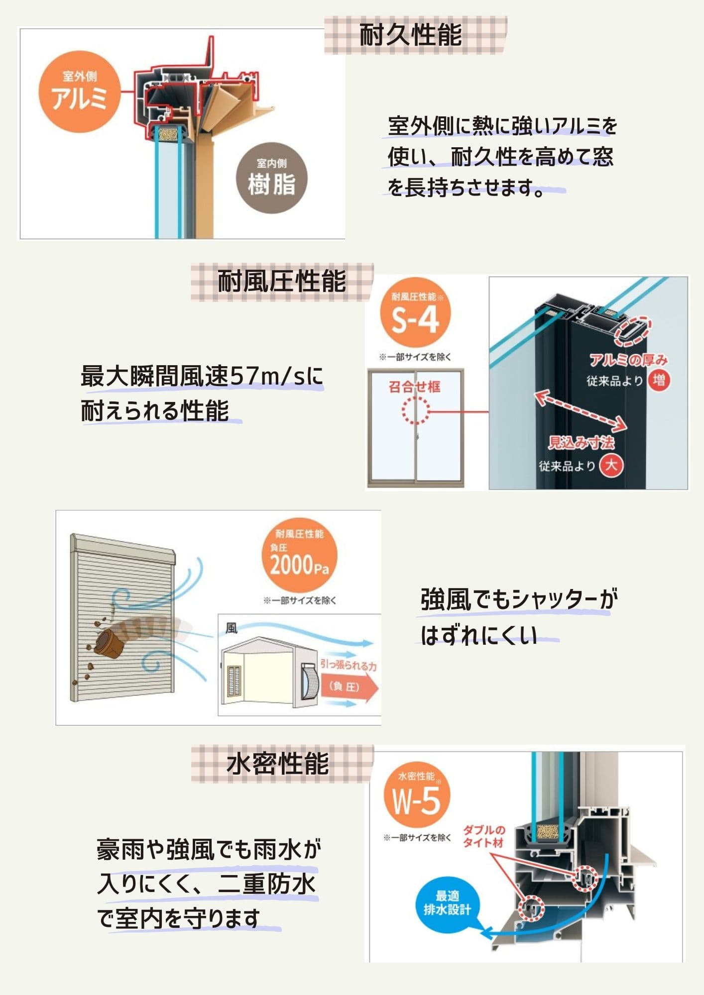 ☆台風や豪雨にも負けない強い窓(レジリエンス/自然に負けない耐久性能)