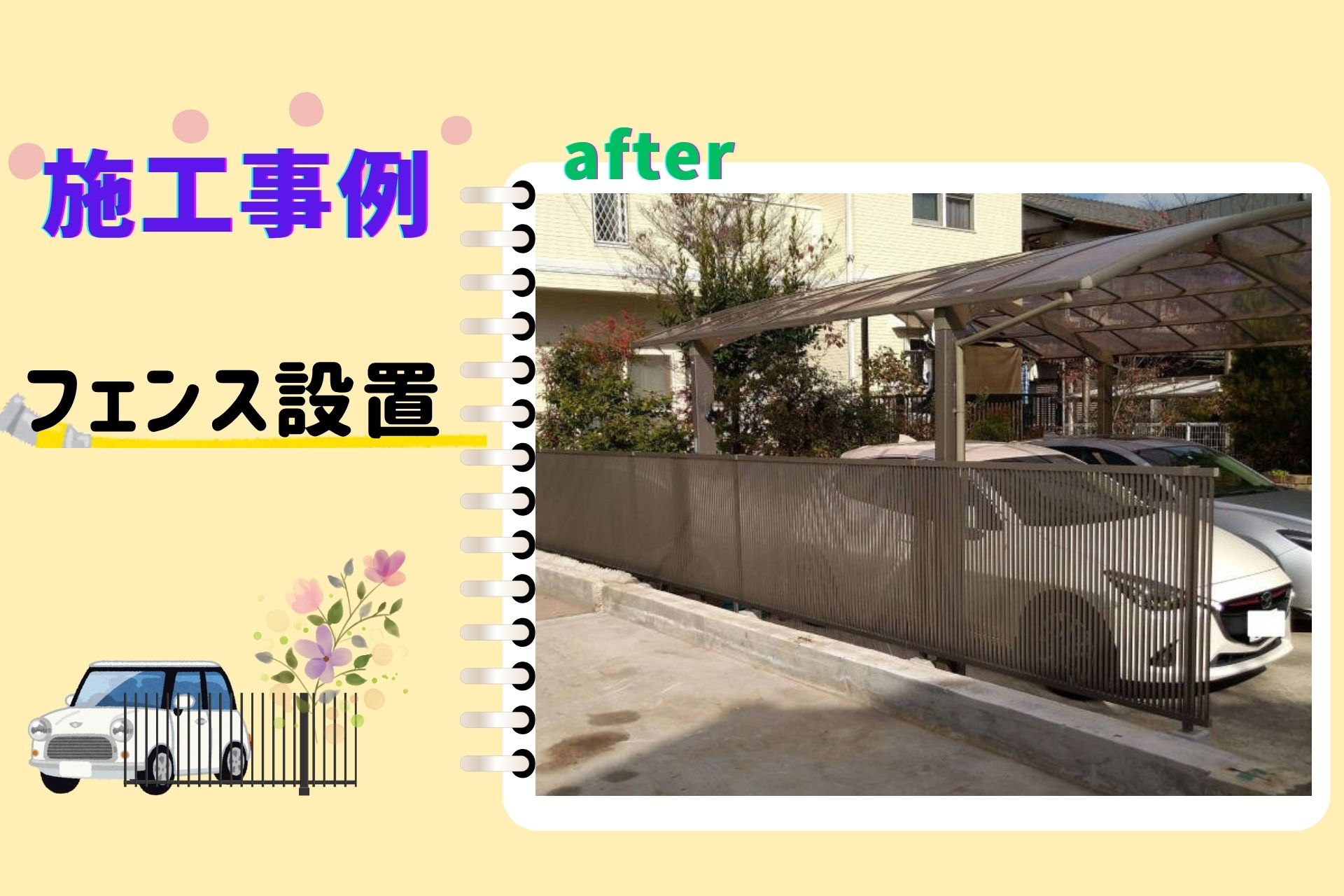 今回は、目隠しとして縦格子タイプのフェンスをご提案、設置させていただきました。